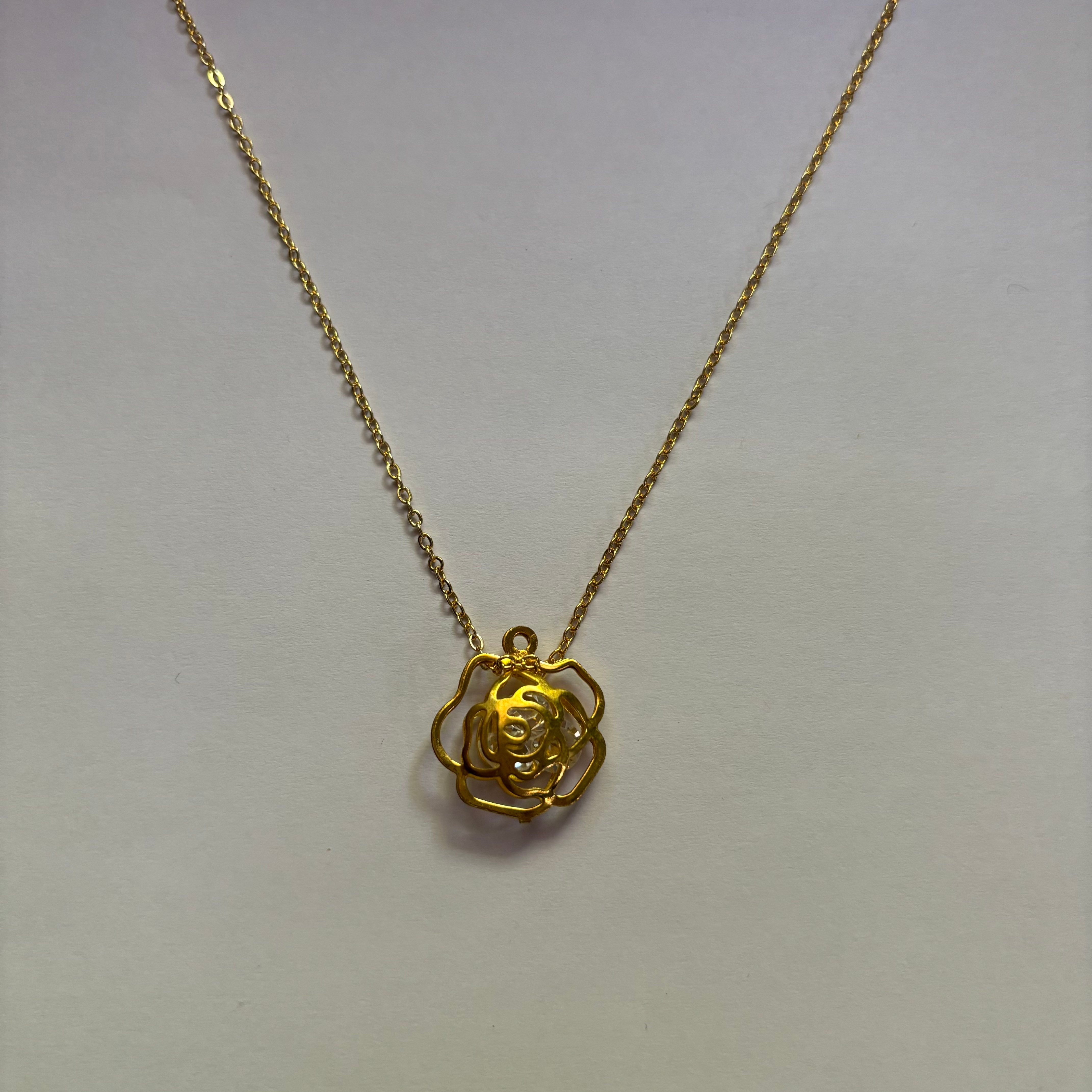 This minimalist necklace showcases a delicately crafted gold-plated rose pendant, symbolizing elegance and beauty. The finely detailed openwork design offers a modern and lightweight feel, making it perfect for everyday wear. Its timeless floral motif makes this piece a versatile accessory that adds a touch of sophistication to any outfit.