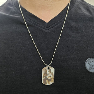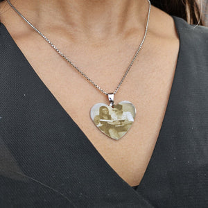 Matching Personalized Pendants: Two necklaces with custom-engraved photos, designed to complement each other.