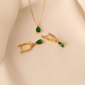 - Elegant Design: Featuring a stunning green teardrop gemstone pendant and matching earrings, this set radiates sophistication