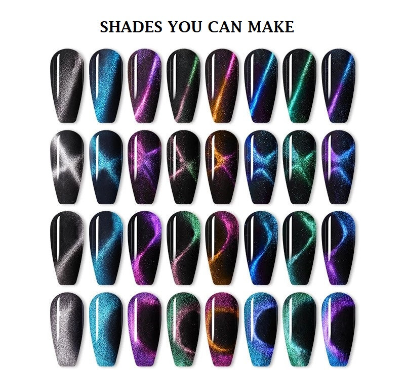 With its unique cat-eye effect, this nail polish is designed to make Your Nails Stand out like never before. The 9D Effect is created using a Special Magnetic Wand that is included with the polish, allowing you to easily and quickly achieve a mesmerizing Cat-Eye pattern on your nails. You can make Different Patterns using your Own Creativity.