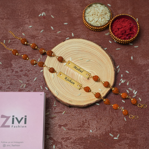 Celebrate your bond with a touch of spirituality and personalization. This rakhi set includes two beautifully designed Rudraksh rakhis with custom name engraving – perfect for brothers who value tradition and style.