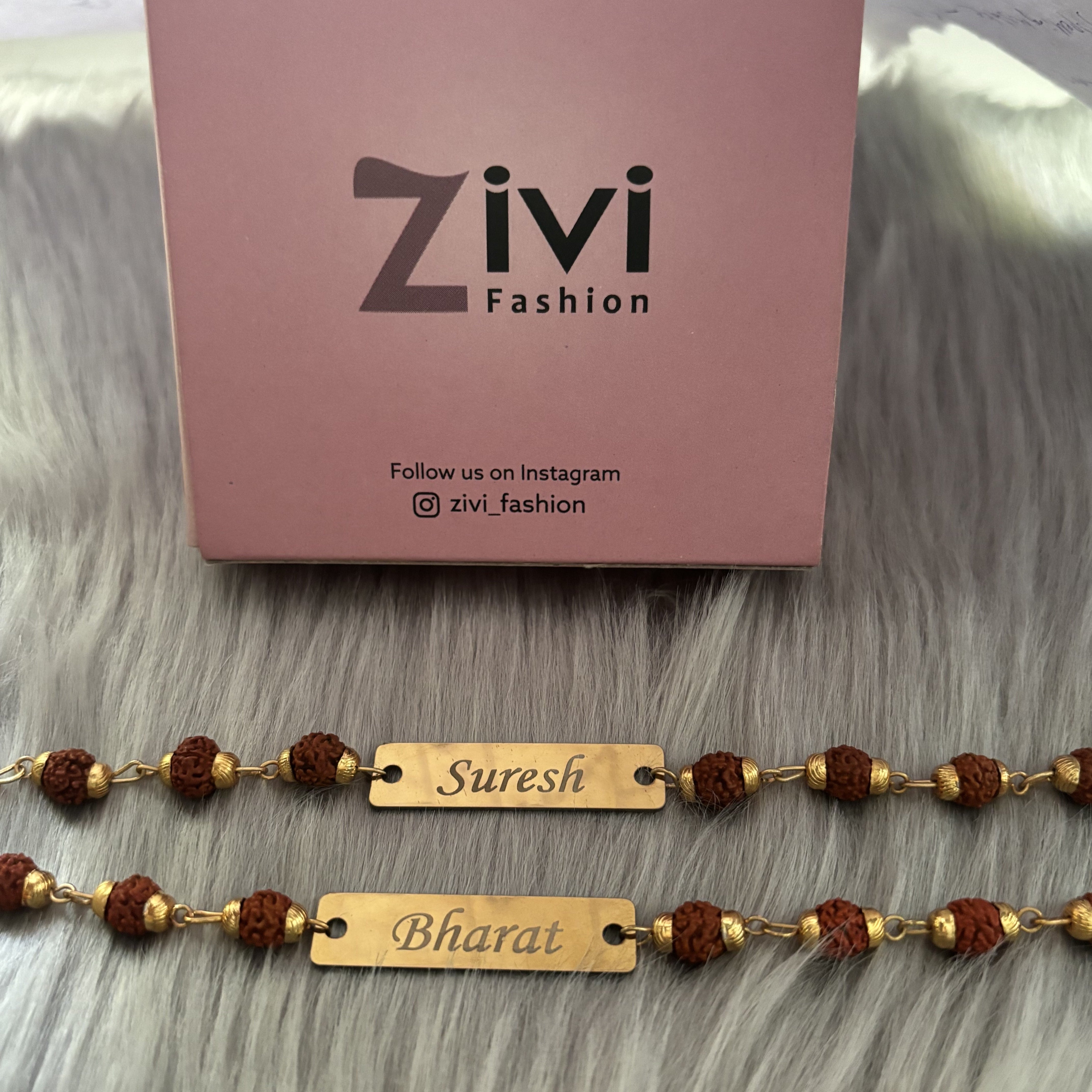 Personalized Rudraksh Name Rakhi (Set of 2pcs) – A Raksha Bandhan gift full of love and tradition.