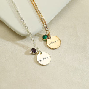 This Engraved Charm Circle Necklace is the perfect combination of style and sentiment. Available in three stunning finishes—gold, rose gold, and silver—each pendant can be engraved with a name or special word, making it a meaningful gift for yourself or a loved one. To add an extra touch of elegance, each pendant is accented with a colorful gemstone that adds a pop of personality and charm.