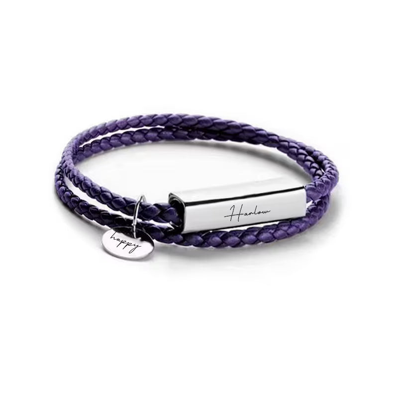 This Engraved Leather Bracelet leather bracelet is a perfect blend of modern style and sentimental value Whether you're looking to express your love, celebrate a special relationship, or gift someone a thoughtful token, this bracelet serves as a beautiful reminder of love and connection. Keep your most cherished memories close to your heart with this stylish, meaningful piece.