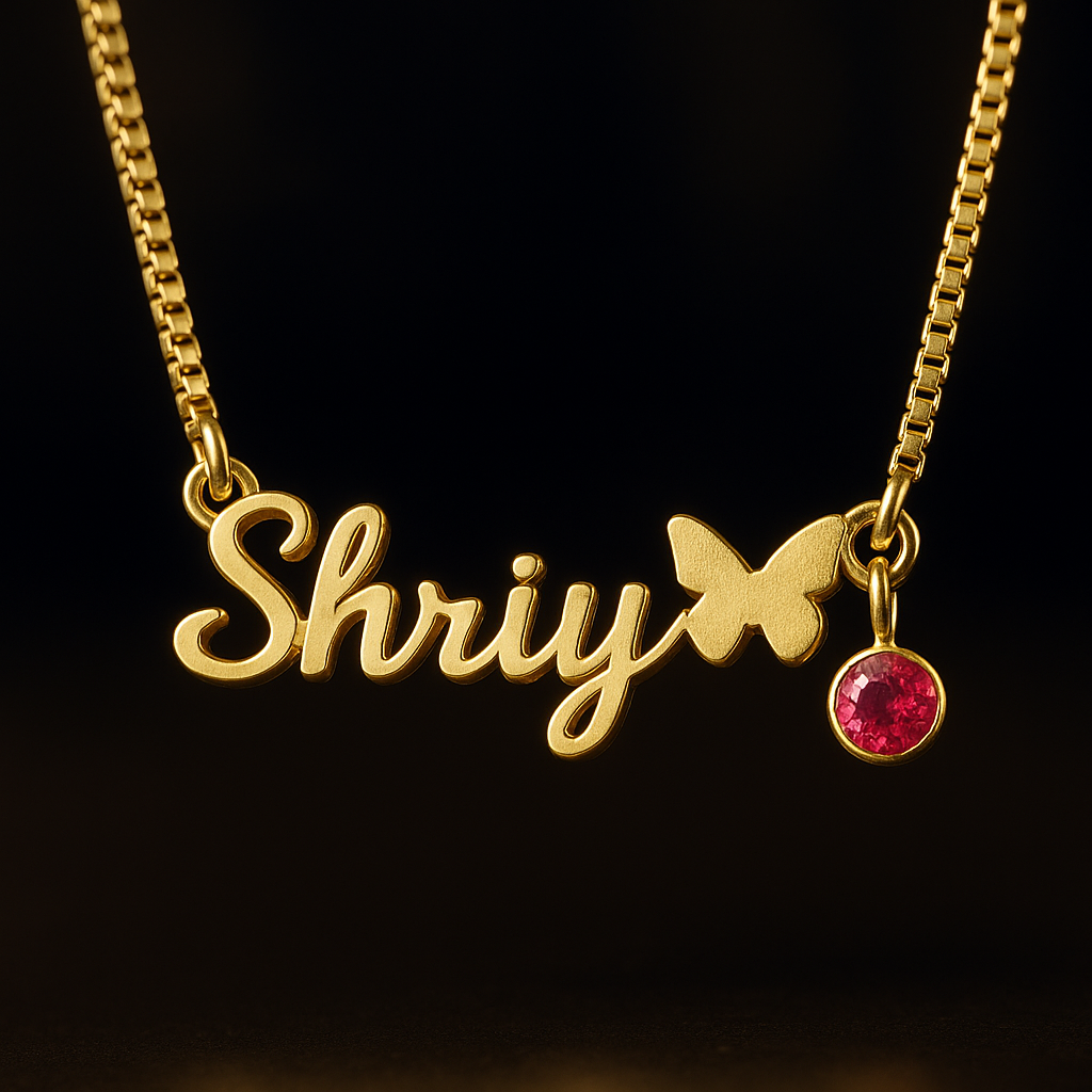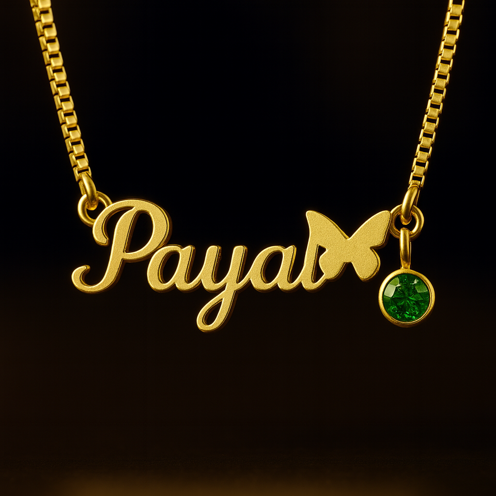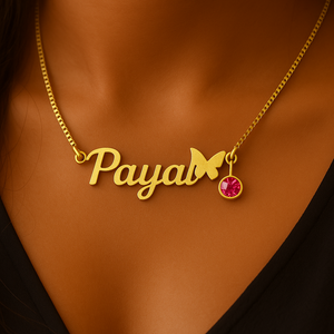 This elegant necklace comes with your name and a beautiful birthstone, making it a stylish and personal accessory for daily wear.