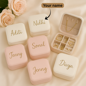 This elegant jewellery box comes with your name beautifully printed, soft velvet-touch interior, and enough space to keep your daily favourites organized.