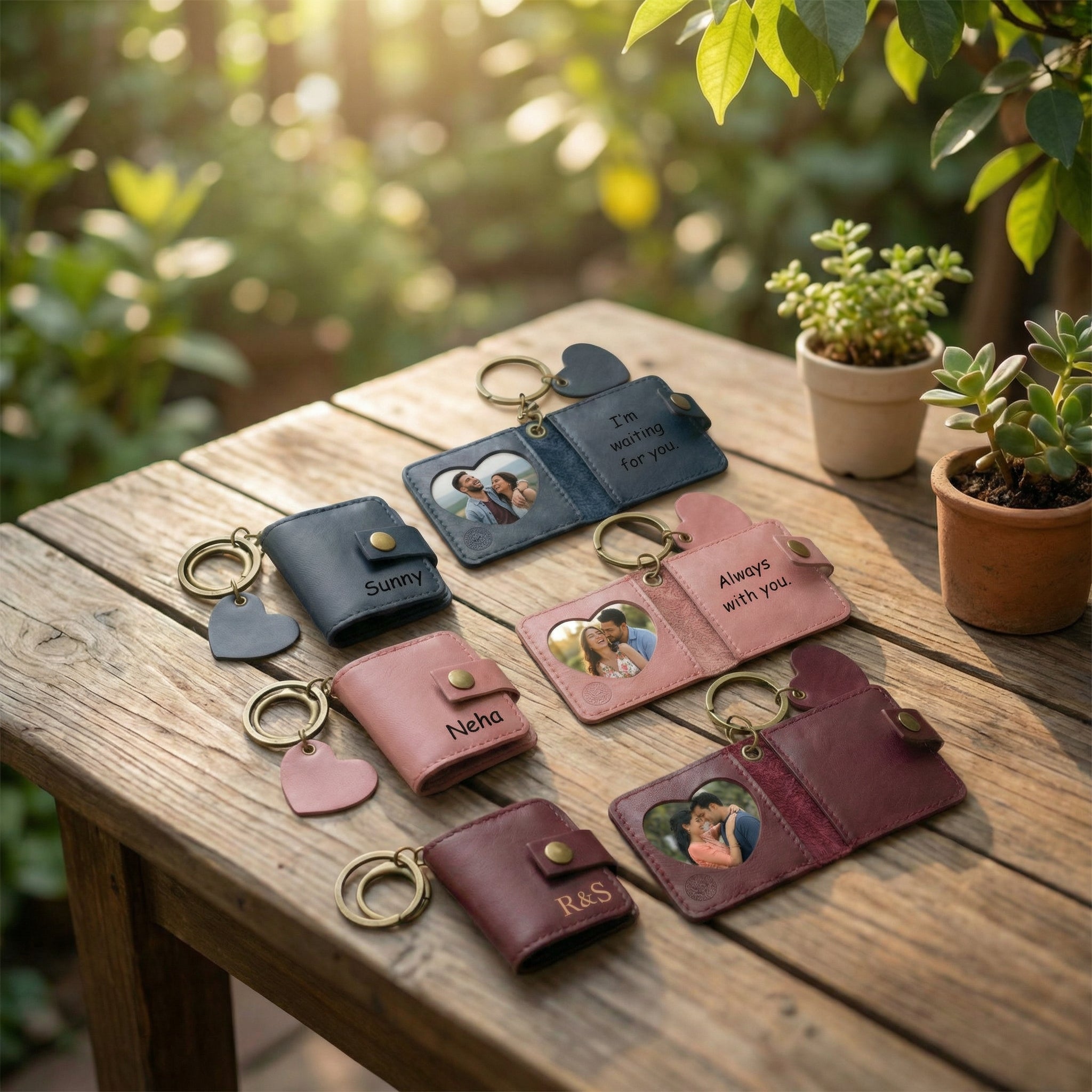 This premium Personalized Keychain comes with a heart-shaped photo window so you can keep your favorite couple/family photo close wherever you go.